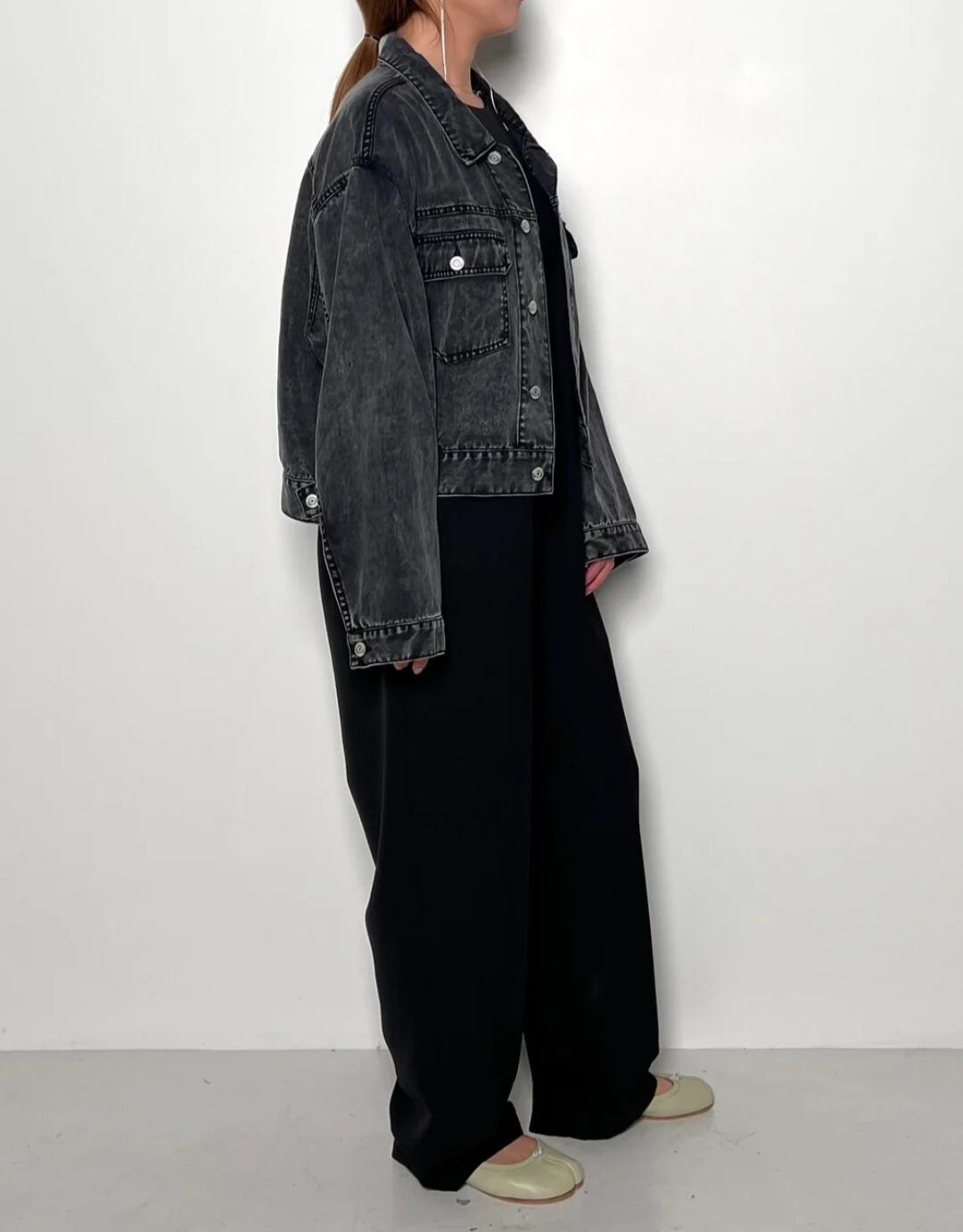 短めの丈感とゆるっとしたワイドなシルエットのジャケットです。