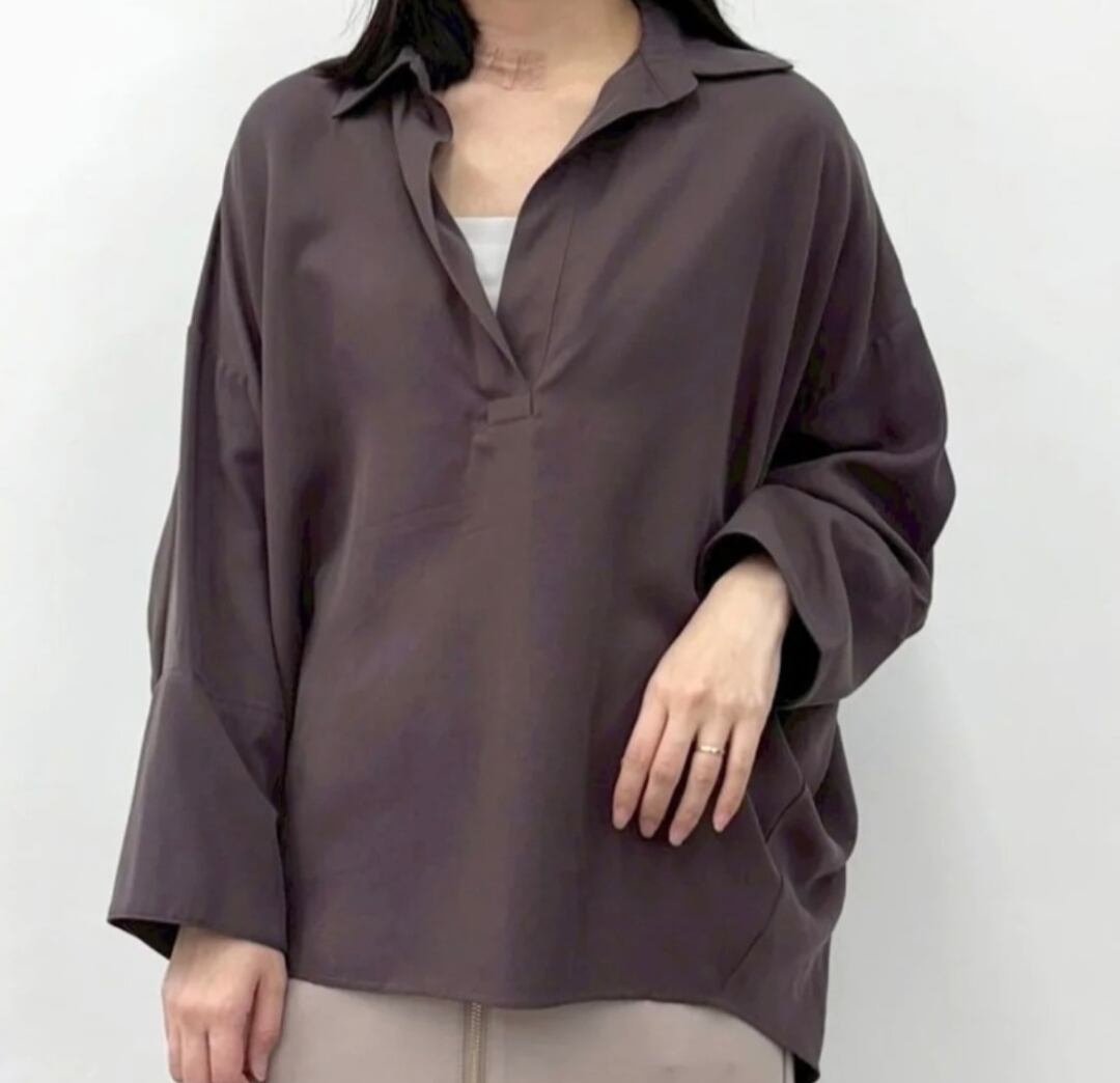 柔らかく着心地のいい素材にスキッパーデザインが大人っぽい雰囲気のドルマンスリーブブラウスです♡