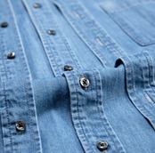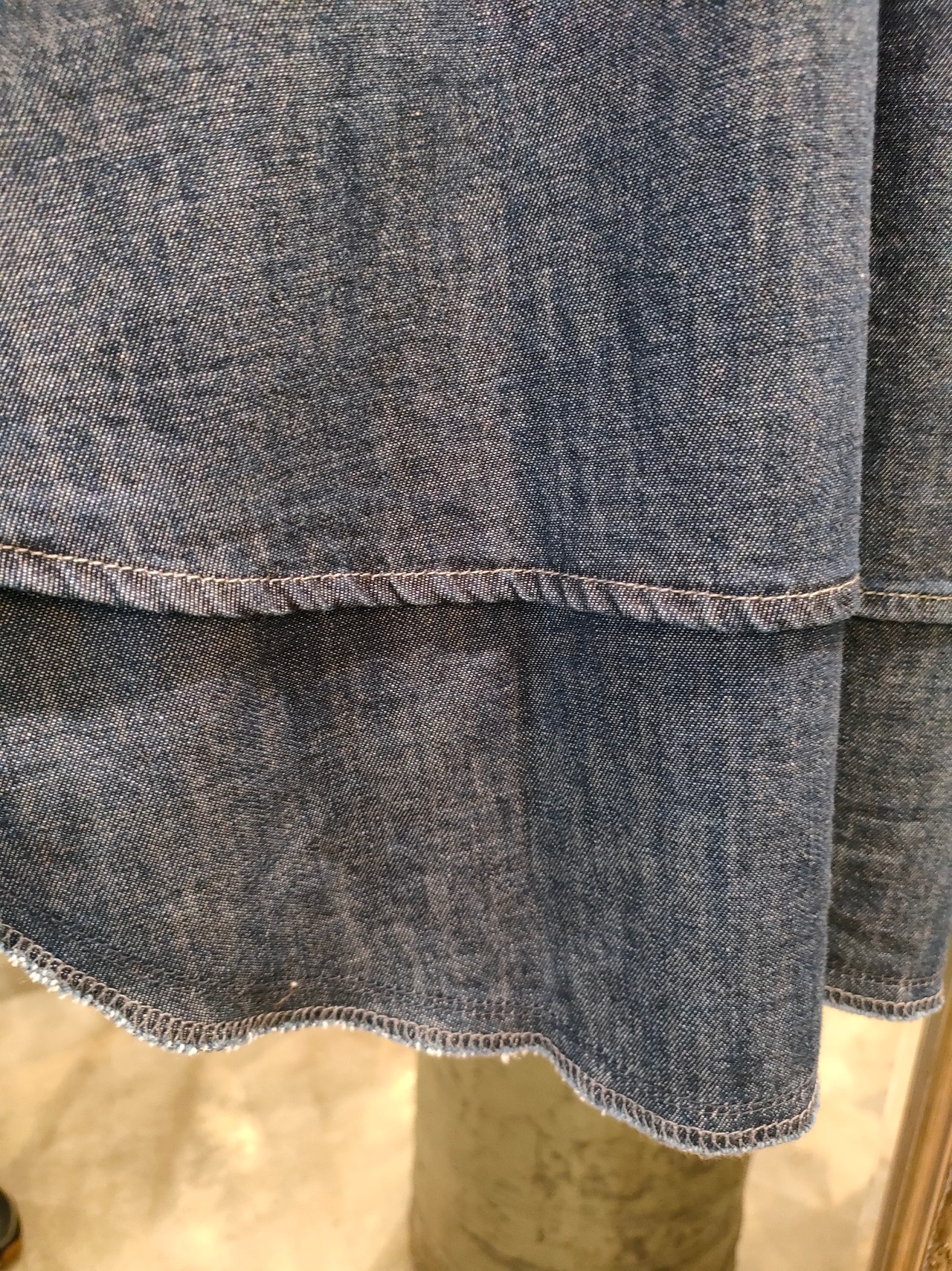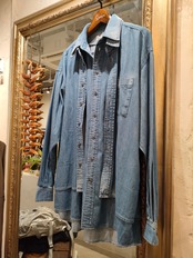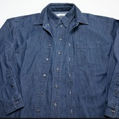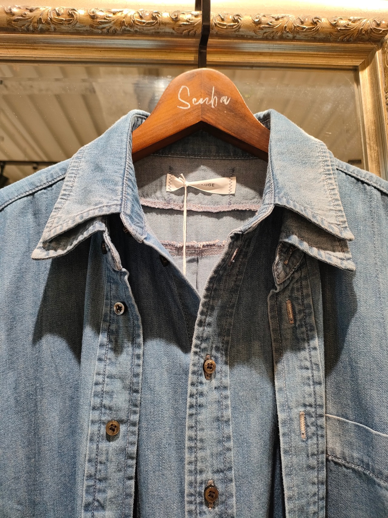 重ね着風のレイヤードデザインが新鮮なデニムシャツです。