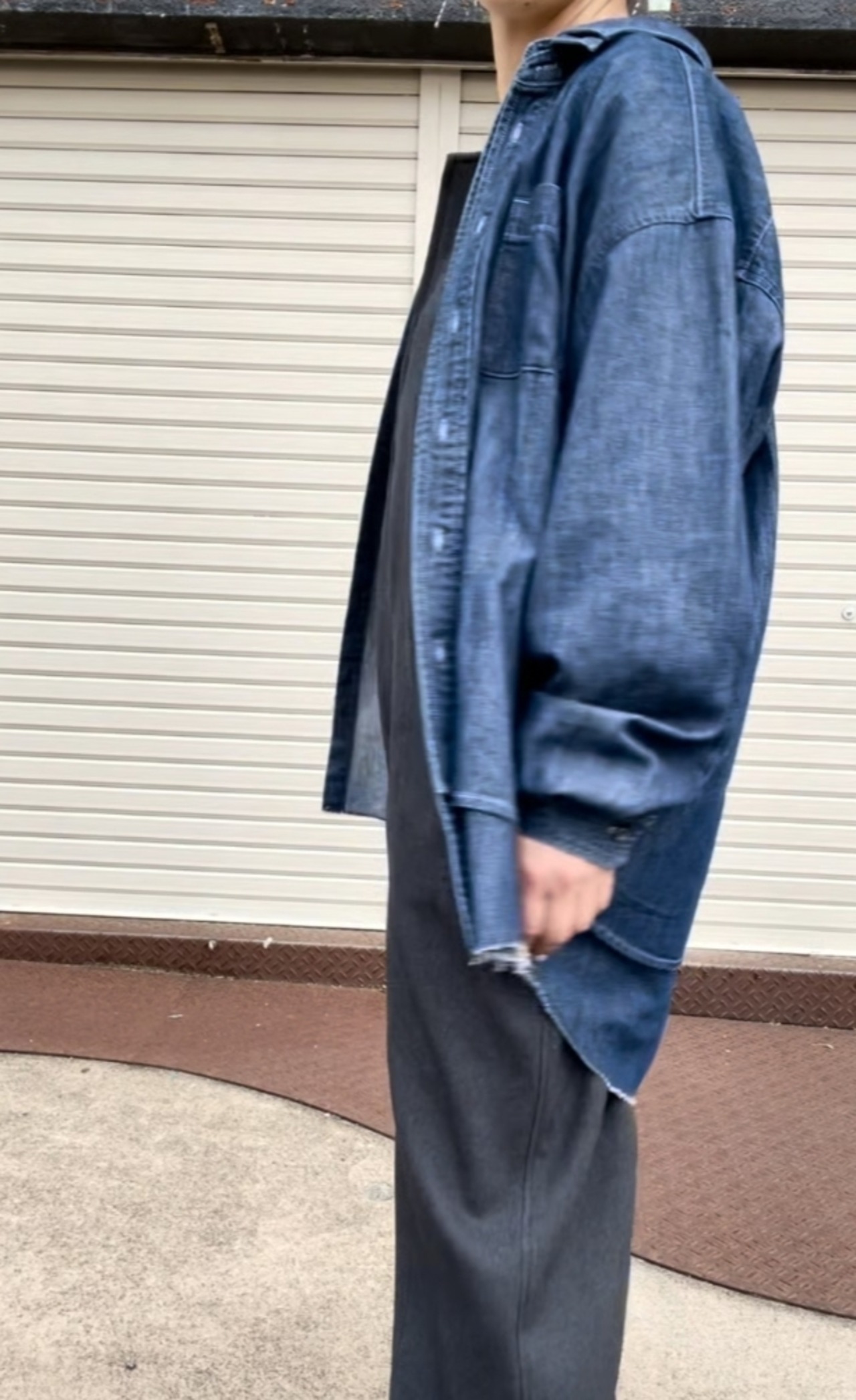 ライトオンスデニムを使用しているため、軽量で、シルエットはメンズシャツをラフに羽織ったようなルーズ感がありつつ、大人の女性に馴染む絶妙なバランス。
