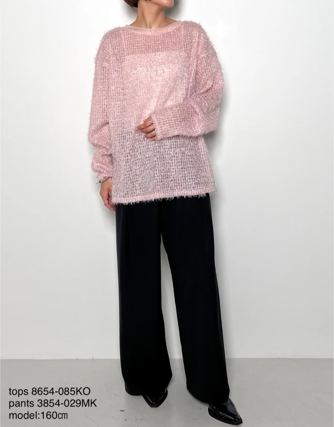 チュール素材にフェザーライクが編みこまれた素材が特徴的なオーバーカットソーになります。