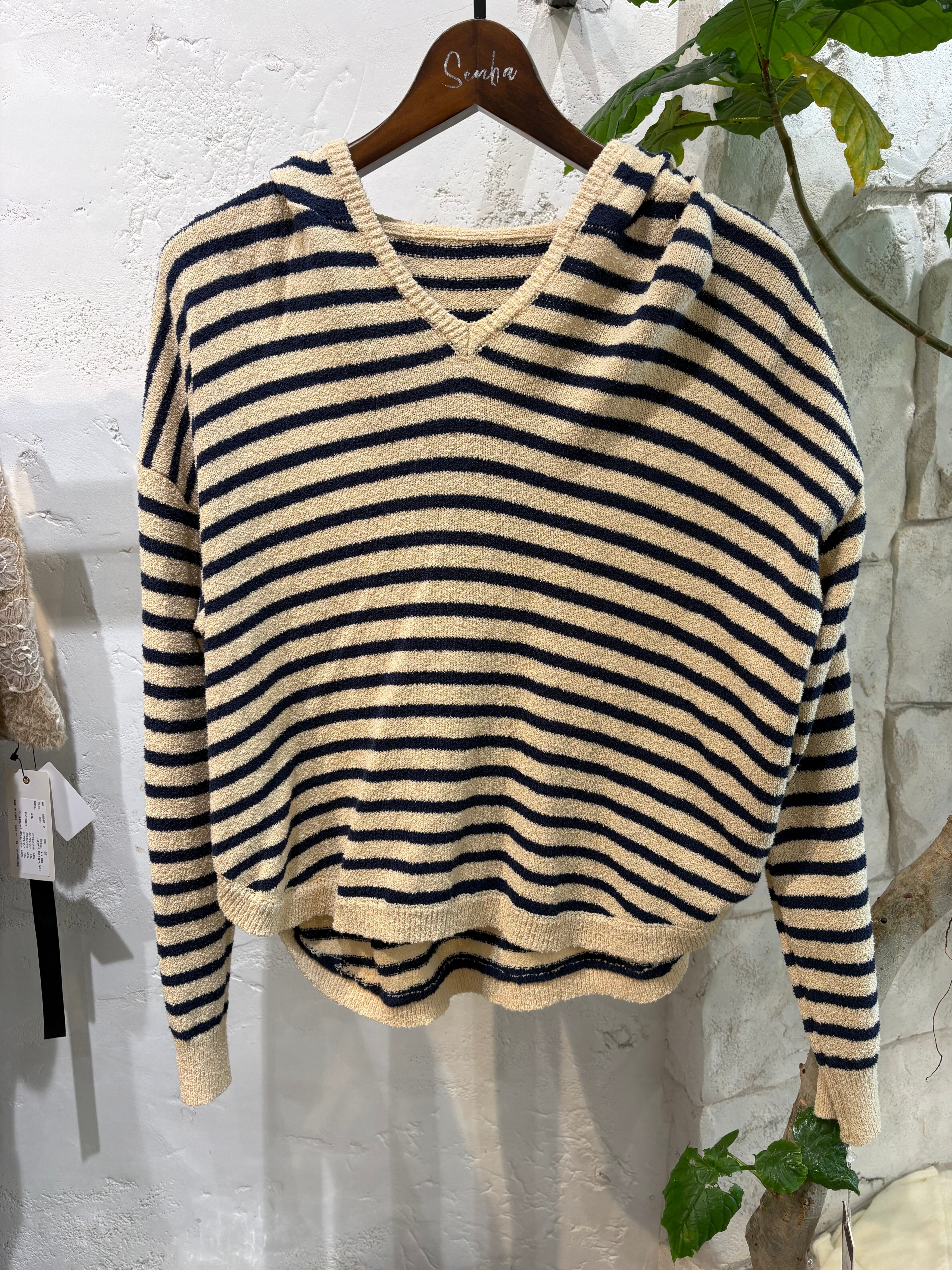 パイル糸フーディーボーダーニット
