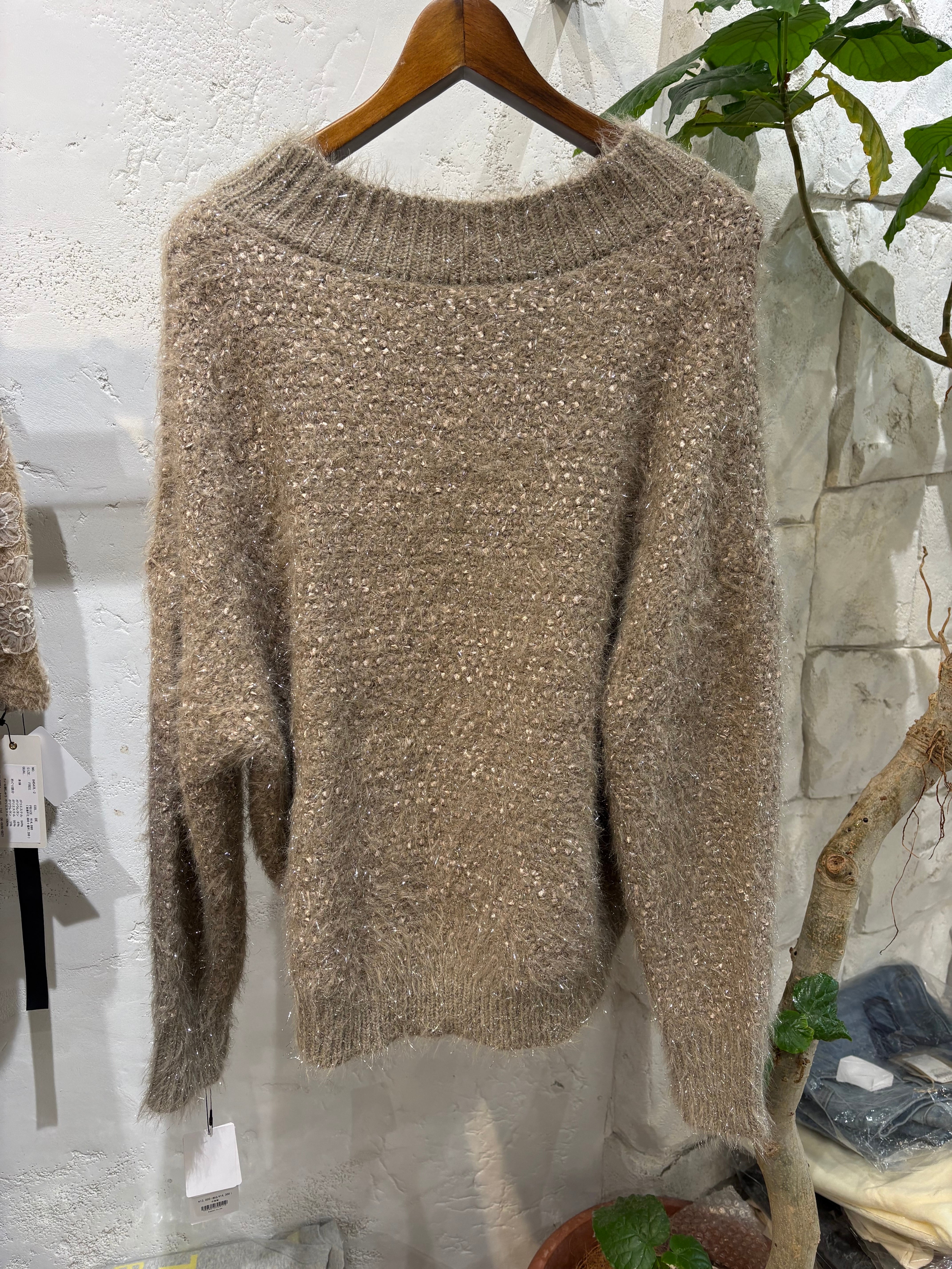 CYNICAL ラメ×フェザー×ネップヤーン Vネックニット 【 552-95107】ベージュ系